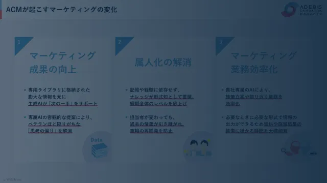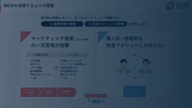 このプロセスを「単発の施策」ではなく、組織にナレッジとして蓄積・再利用していく考え方がMCMであり、データを活用したマーケティング活動で成果をあげるための必要不可欠な要素です。